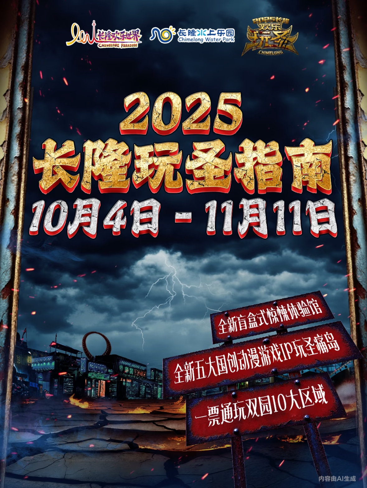 一票通玩双园十大区域,挑战全新盲盒式惊悚体验馆,还能登陆长隆重磅打造的首个五大国创动漫游戏IP玩圣“痛岛”(“痛岛”10月15日开启)、穿越中式幻境、朋克诡城、南瓜王国、民国冥界、末日基地(在水上乐园)等五大奇境!